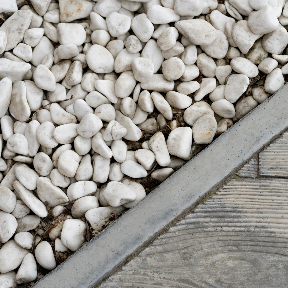 Grava decorativa blanca.